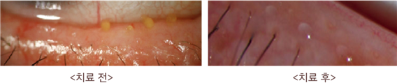 눈꺼풀쪽 피부와 마이봄샘에 조사하여