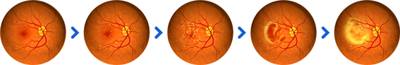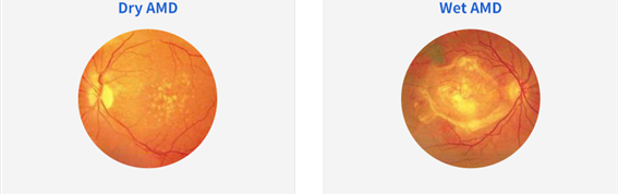 드루젠이 점차 증가하다가 (건성), 비정상적인 혈관이 자라 들어와서 (습성) 출혈과 부종, 삼출물을 발생시켜 급격한 시력저하를 유발합니다. 말기에는 섬유화되어 굳은살처럼 남게 되어 황반에 돌이킬 수 없는 영구적인 손상을 초래하게 됩니다.